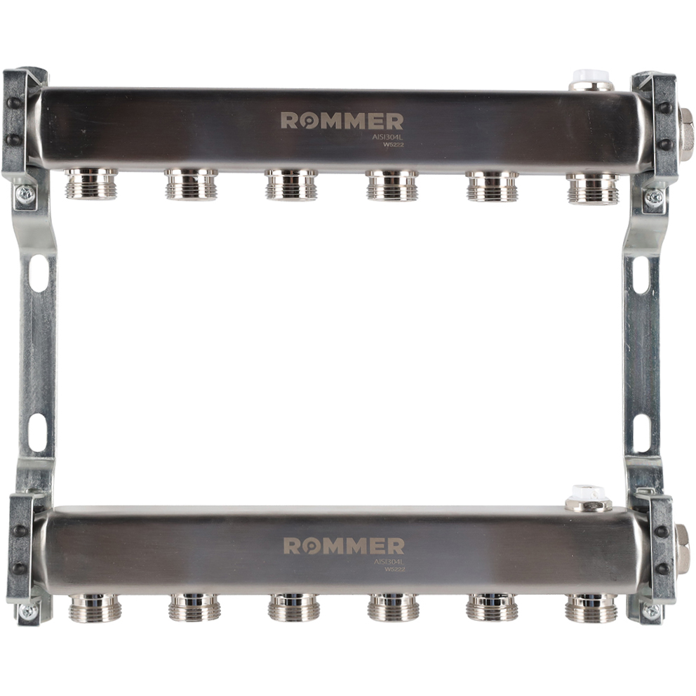 ROMMER Коллектор из нержавеющей стали для радиаторной разводки 6 выходов